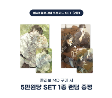 - For every ₩50,000 spent on collaboration merchandise, customers receive one random postcard + photocard set out of 2 types.